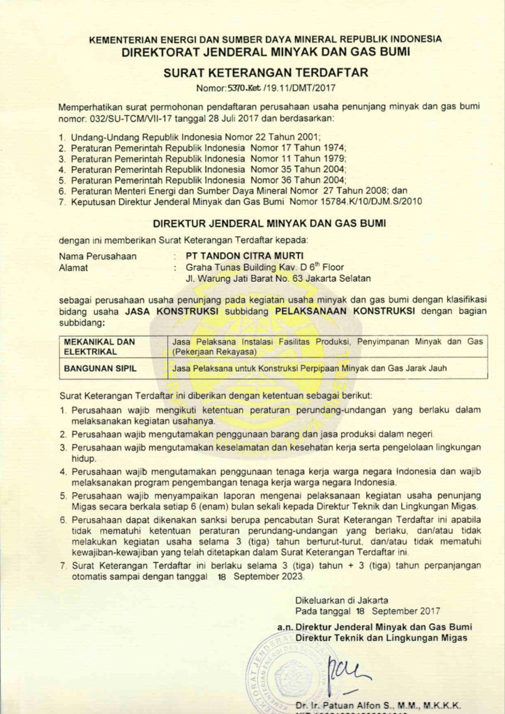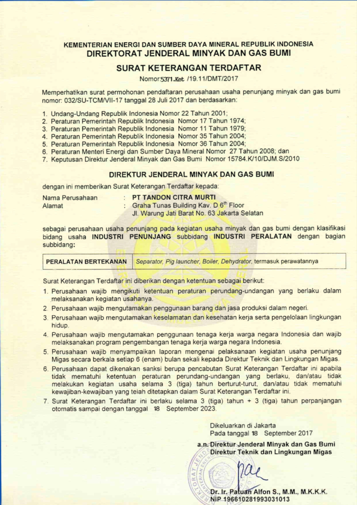SKT Migas : 5370.Ket/19.11/DMT/2017