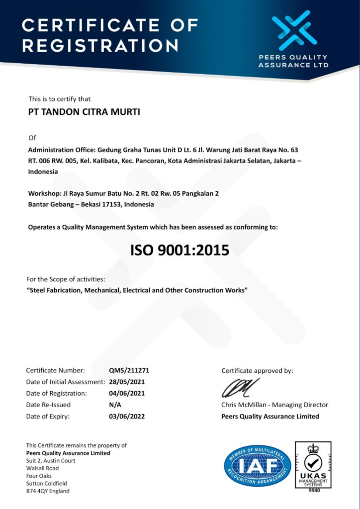Established on October 14, 1995, PT. Tandon Citra Murti (TCM) is located at Raya Sumur Batu Street No. 02, Pangkalan 02, Bantar Gebang, Bekasi, West Java, Indonesia. Starting as a small-scale operation with just a few dozen staff and workers, TCM has grown to become a leading construction company in Indonesia, with a sustainable and innovative experience in supporting the nation’s development.
